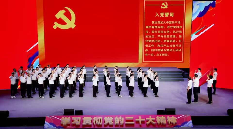 活動(dòng)中還組織了新黨員集體宣誓,對(duì)集團(tuán)先進(jìn)典型事跡進(jìn)行展播。慶祝活動(dòng)在全場(chǎng)合唱《沒有共產(chǎn)黨就沒有新中國》的歌聲中落下帷幕。
