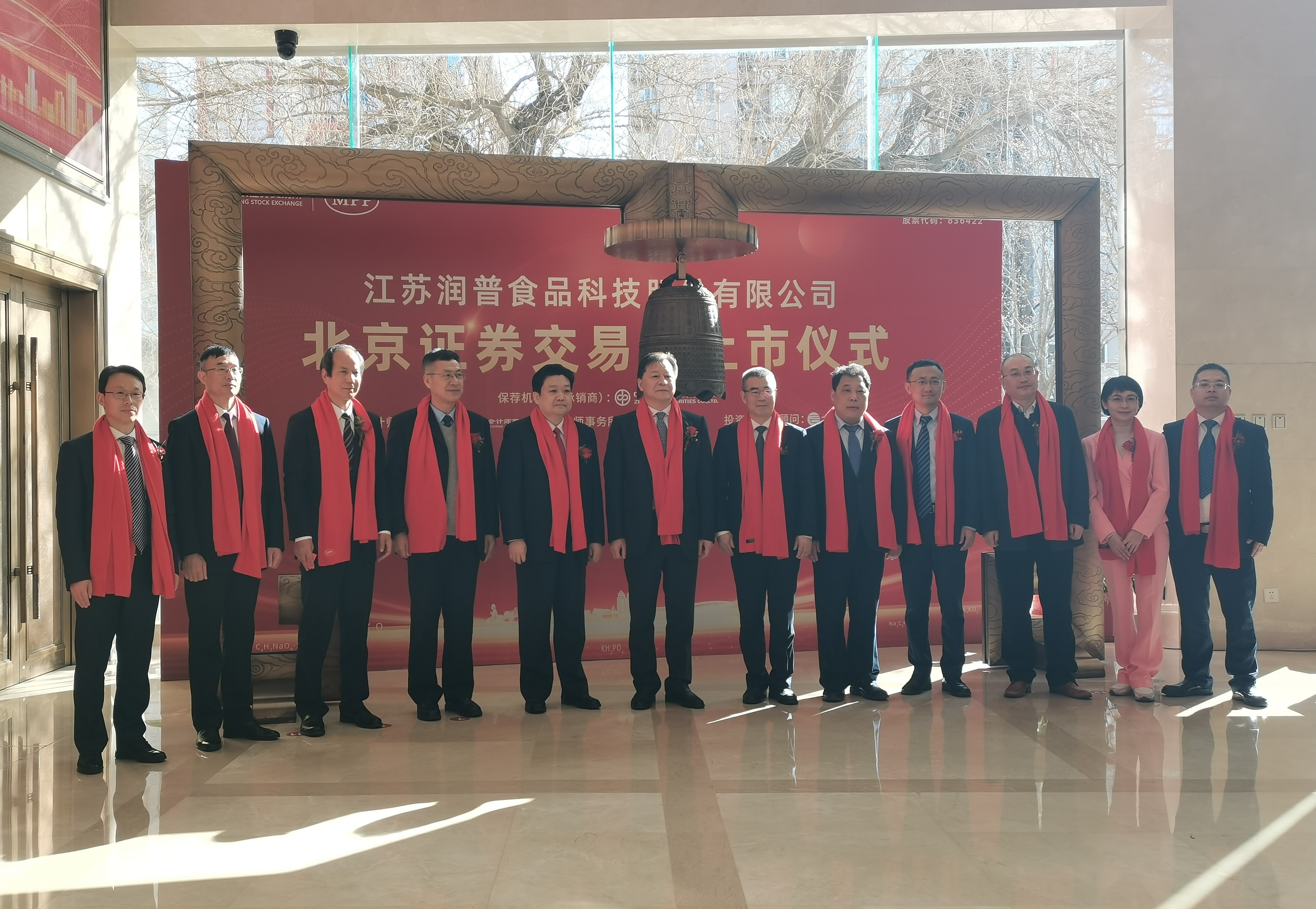 3月1日上午,集團投資企業(yè)——江蘇潤普食品科技股份有限公司在北京證券交易所首發(fā)上市,股票代碼為836422,發(fā)行價格8.5元/股。
