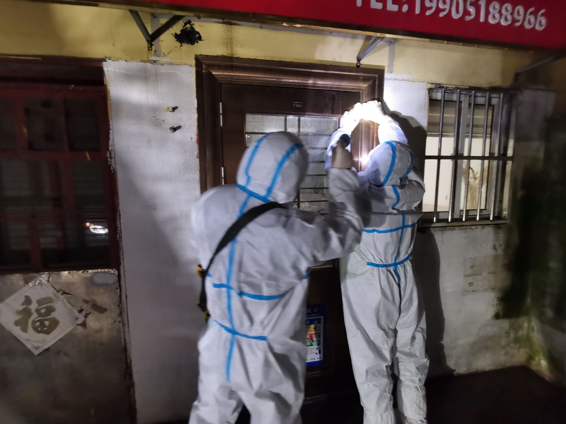 由于新橋社區(qū)多為自建房,門(mén)牌號(hào)混亂難找,房地產(chǎn)和資產(chǎn)公司的志愿者們冒雨堅(jiān)守,逐戶(hù)排查登記信息,宣傳防護(hù)知識(shí),講解防控要求,并對(duì)重點(diǎn)監(jiān)控住戶(hù)安裝防疫門(mén)磁。