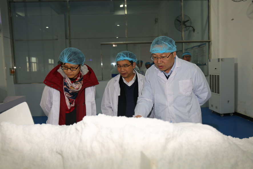 曹鑫副處長一行參觀了金橋制鹽公司雪花鹽車間、加工鹽車間和包裝鹽車間,現(xiàn)場了解海食鹽生產(chǎn)工藝流程、產(chǎn)品銷售情況,并聽取了公司目前生產(chǎn)過程、質(zhì)量管理以及市場銷售等情況匯報(bào)。曹鑫副處長對(duì)金橋制鹽公司質(zhì)量管理工作給予了肯定,并希望公司能夠牽頭制訂海鹽生產(chǎn)企業(yè)工藝流程標(biāo)準(zhǔn),為國家制訂海鹽質(zhì)量管理辦法提供參考依據(jù)。