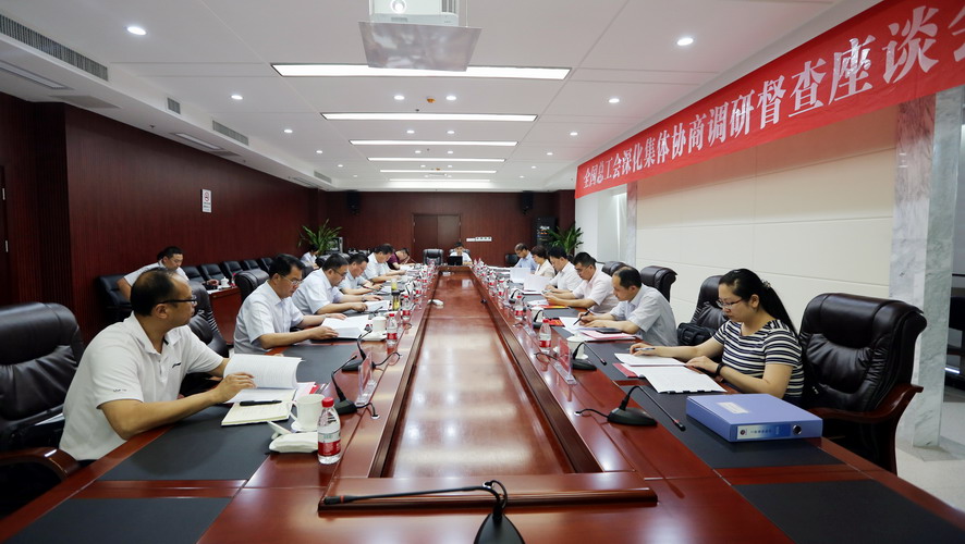 7月11日下午,由河北省總工會黨組成員、副主席萬小明為組長的全國總工會第八調研督查組一行走進工投,對我公司落實中華全國總工會深化集體協(xié)商工作規(guī)劃情況開展調研督查,江蘇省總工會權益保障部部長臧鐵柱,市人大常委會副主任、市總工會主席鄭平,市總工會黨組書記、副主席丁維杰,副主席秦云,集團公司董事長、黨委書記楊龍,黨委委員、工會主席戴鴻鳴陪同調研。