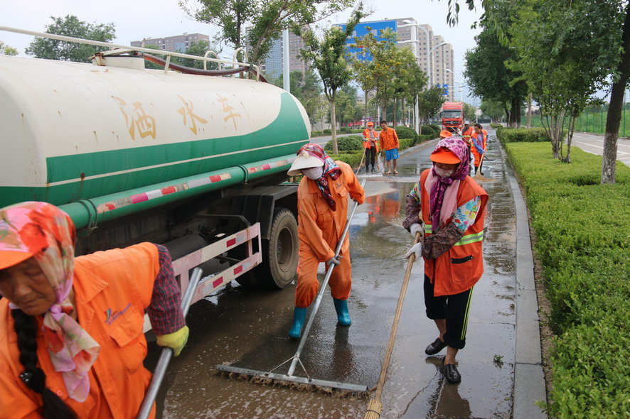 8月19日在火車站廣場及周邊路段,40多名綠化、保潔工人及灑水車、清掃車等全力保障火車站重點地段的環(huán)境衛(wèi)生,為過往旅客提供一個干凈整潔舒心的出行環(huán)境。據(jù)現(xiàn)場負(fù)責(zé)人龔本國介紹,隨著創(chuàng)衛(wèi)工作力度的進一步加大,開發(fā)區(qū)對我們火車站廣場及周邊路段的環(huán)境衛(wèi)生提出了更高的要求,我們對會泉路商戶門前的綠化進行了補植,種植紅葉石楠等苗木600多平方,每天專門安排一輛灑水車對火車站廣場及周邊路段進行巡回清洗清掃,確保路面干凈無塵土,對廣場站臺、護欄、果皮箱、路燈桿、花壇進行清理擦洗,對下水道進行清掏,蓋板更換維修。為確保創(chuàng)衛(wèi)工作任務(wù)高標(biāo)準(zhǔn)高質(zhì)量完成,連日來,綠化養(yǎng)護、環(huán)衛(wèi)保潔工人天天早上6點上班,到晚上10點下班,中午吃飯休息只有一個小時,每天工作10多個小時,為創(chuàng)衛(wèi)工作做了很多實實在在的事情,他們真的很不易,很辛苦,只因有了他們的辛勤勞動、無私奉獻,城市環(huán)境衛(wèi)生才會越來越好。