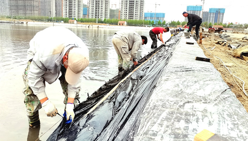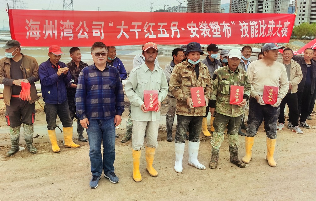 本次技能比武共有24名一線職工報(bào)名參加,分為4組,每組6人,以小組為單位,同規(guī)模、同長(zhǎng)度、同條件格堰,在規(guī)定時(shí)間內(nèi)完成塑布安裝。