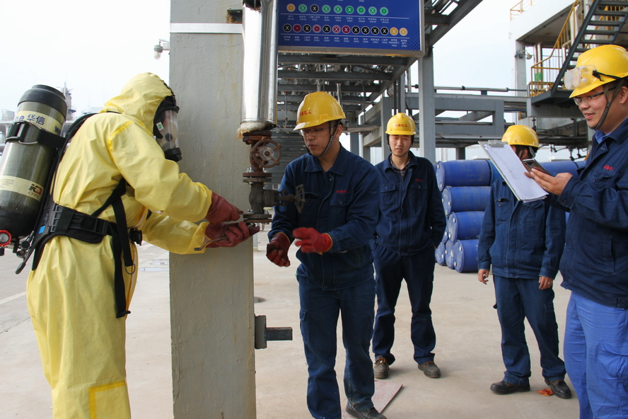 創(chuàng)新競賽項(xiàng)目,提升員工技能水平。該公司結(jié)合生產(chǎn)實(shí)際,完善比賽內(nèi)容,創(chuàng)新比賽形式,提高比賽難度,分別在雙氧水、氯化芐、苯甲醛、倉儲、檢測和維保6個重要操作崗位分組進(jìn)行理論和操作比賽。在往年員工勞動技能競賽方案的基礎(chǔ)上,增加換濾袋、苯甲醛包裝等競賽項(xiàng)目,其中叉車、滾桶和搶險(xiǎn)救援競賽項(xiàng)目擴(kuò)大了參賽范圍。此外,應(yīng)急響應(yīng)、應(yīng)急處置和搶險(xiǎn)救援項(xiàng)目不僅讓參賽員工更加熟悉防化服佩戴和呼吸器穿戴方法,還檢驗(yàn)了各級人員對突發(fā)事故的應(yīng)急救援實(shí)戰(zhàn)能力和協(xié)調(diào)程度。這些競賽項(xiàng)目有效提升了員工的操作技能水平、安全防范意識、應(yīng)急救援能力和隱患排查能力。