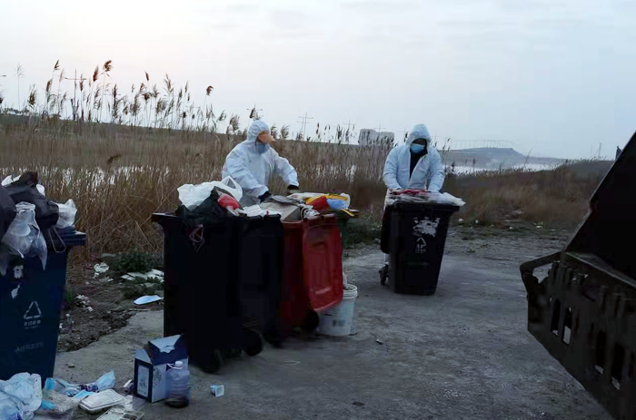 疫情防控期間,保潔分公司要保障徐新路、海濱大道等主干道路及幸福家園及張圩小區(qū)周邊道路等范圍(600多萬平方米)垃圾日常清運(yùn)的同時(shí),要將徐圩新區(qū)人民醫(yī)院核酸檢測點(diǎn)垃圾清運(yùn)到位。他們在共產(chǎn)黨員耿恒發(fā)的帶領(lǐng)下,做好疫情防控措施,早5晚8開展工作。進(jìn)入三月,天氣逐漸轉(zhuǎn)暖,防護(hù)服“籠罩”已不是那么舒服,在陽光照射下,汗水很快便浸濕了衣襟,但他們無怨無悔。面對大量檢測廢物和口罩,帶著未知的病毒風(fēng)險(xiǎn),日清運(yùn)垃圾30多噸,清理消毒各類垃圾桶600余個(gè)。