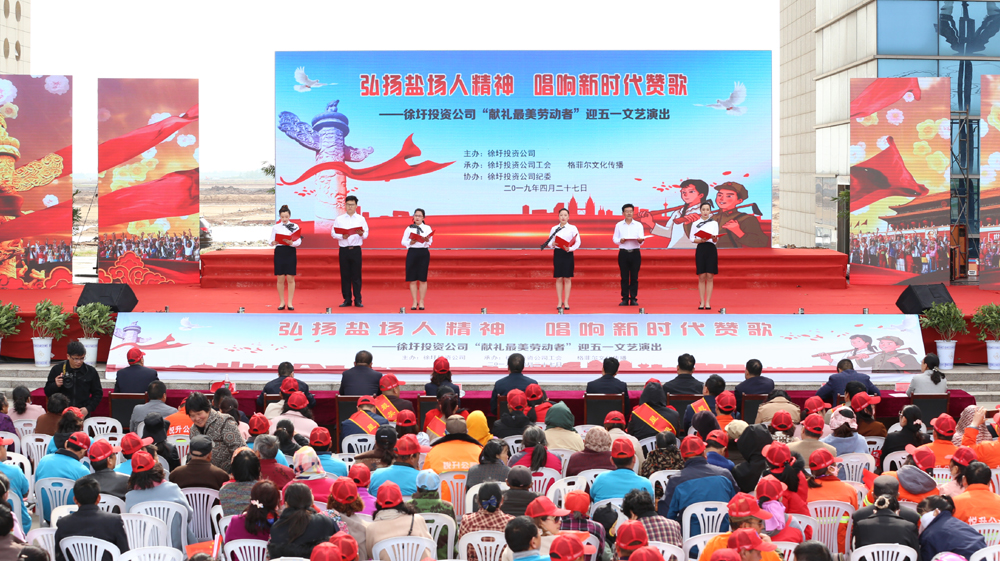 徐圩投資公司舉辦“獻禮最美勞動者”文藝演出,并舉行首屆“星級員工”和“最美職工家庭”獲得者頒獎儀式。