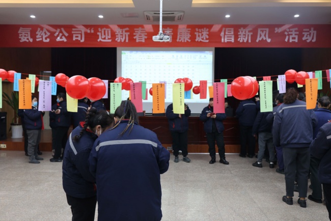 2月7日,新春佳節(jié)來(lái)臨之際,杜鐘氨綸公司紀(jì)委組織“迎新春 猜廉謎 倡新風(fēng)”活動(dòng)。職工歡聚一堂,通過(guò)謎語(yǔ)與廉潔相結(jié)合的形式共同迎接龍年。