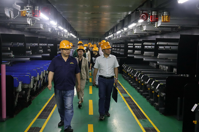 首先,張明星書記一行參觀了展廳、八期生產(chǎn)線。參觀過程中,董事長張斌詳細介紹了氨綸絲的性能與產(chǎn)品銷售取得的成就,張明星書記對我公司低溫熱粘合氨綸、抗菌氨綸、驅(qū)蚊氨綸及氨綸生產(chǎn)全流程自動化給出了極高評價。