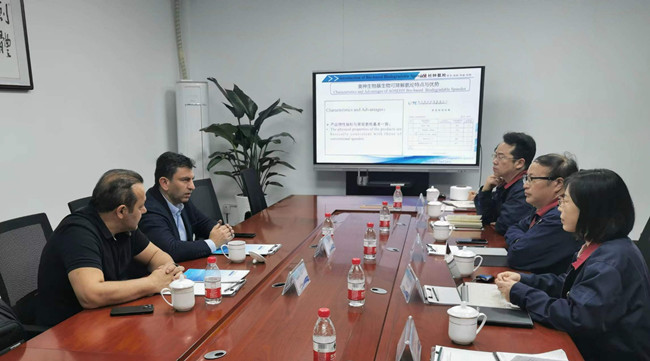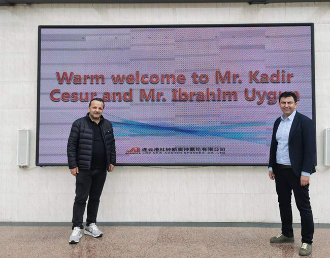 隨著疫情的結(jié)束以及紡織服裝市場(chǎng)的回暖,近日,土耳其NOGATEX公司總經(jīng)理IBRAHIM和銷售總監(jiān)KADIR到訪氨綸公司,對(duì)雙方的戰(zhàn)略合作方向進(jìn)行了探討和交流。這是繼2016、2018年之后客戶的第三次來訪,董事長張斌對(duì)他們的到來表示熱烈歡迎。
