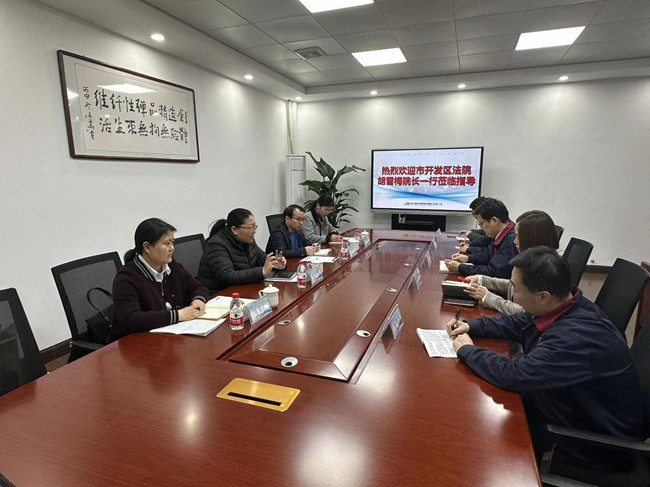 2023年4月21日,連云港經(jīng)濟技術開發(fā)區(qū)法院副院長胡雪梅一行蒞臨氨綸公司進行法務工作交流指導,公司常務副總經(jīng)理楊森、副總經(jīng)理陳靜陪同。
