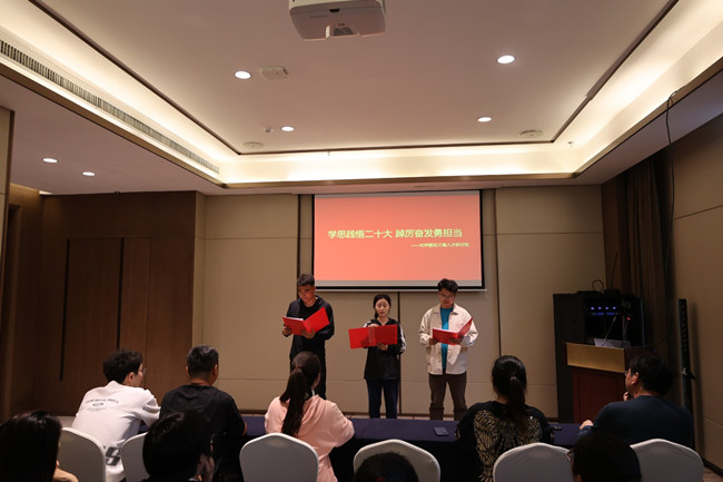 活動(dòng)中,組織開(kāi)展了以“學(xué)思踐悟二十大,踔厲奮發(fā)勇?lián)?dāng)”為主題的學(xué)習(xí)研討活動(dòng),安排黨務(wù)干部領(lǐng)學(xué)黨的二十大報(bào)告,年輕干部誦讀“黨的二十大金句”,紀(jì)檢、財(cái)務(wù)、技術(shù)、企管部門代表結(jié)合本職工作讀原文分享交流感悟等系列活動(dòng),最后一起觀看了小品《坑》。