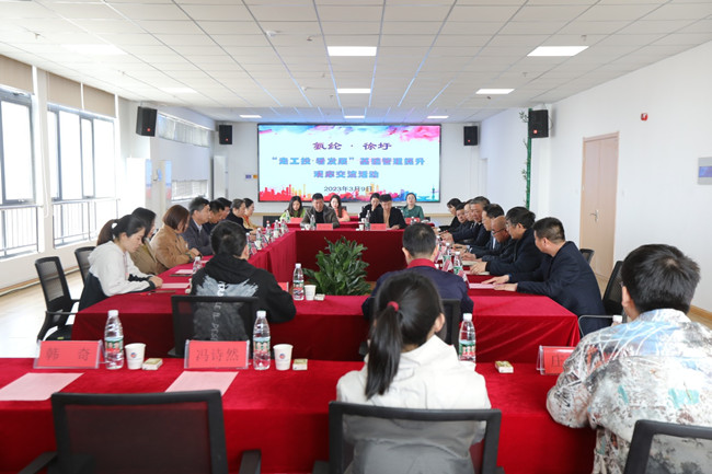 3月9日,杜鐘氨綸公司領(lǐng)導(dǎo)班子成員及三鷹人才組成調(diào)研組,由黨委書記胡傳法帶隊(duì),赴徐圩投資公司開展“走工投 看發(fā)展”基礎(chǔ)管理提升觀摩交流活動。徐圩投資公司黨委書記、董事長、總經(jīng)理莊清付等領(lǐng)導(dǎo)陪同交流。