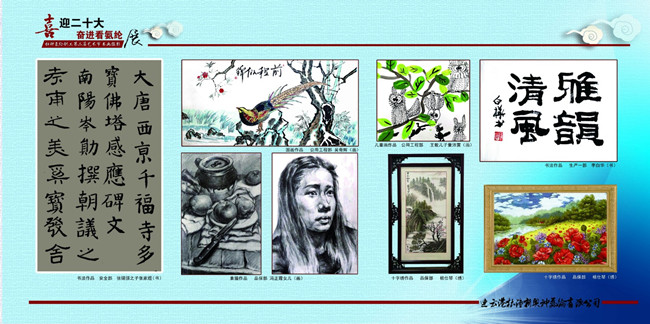 本次活動共征集到80多幅作品,職工作品流派紛呈、形式多樣,書法作品有革命詩詞也有經(jīng)典歌賦,有名言警句也有勵志格言;繪畫作品包含了國畫、油畫、水彩、版畫等種類。活動作品從不同的角度展現(xiàn)了祖國的秀美河山、城鄉(xiāng)的風土人情和溫馨的生活場景。