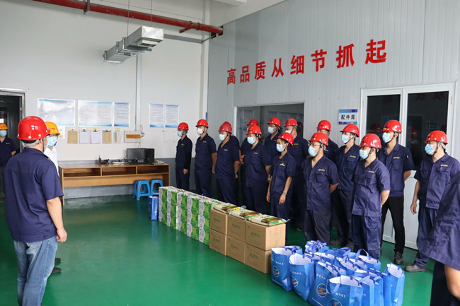 7月19日,集團(tuán)公司黨委書記、董事長丁銳來杜鐘氨綸公司走訪慰問高溫下奮戰(zhàn)在一線崗位的廣大職工,送去防暑降溫物品和親切慰問。