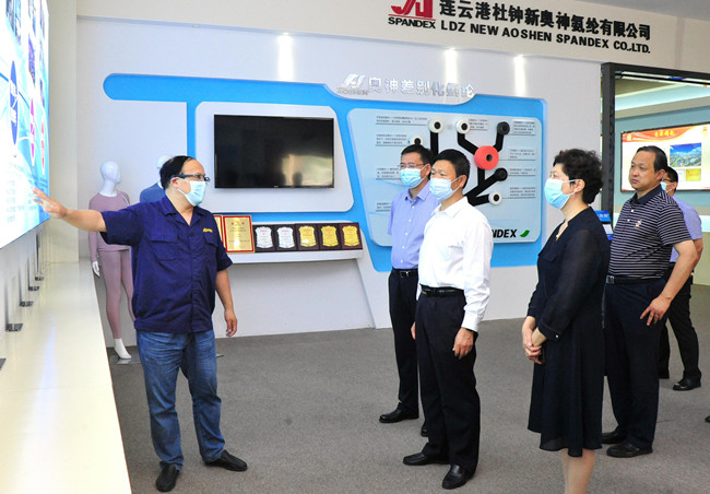 6月15日,連云港市副市長(zhǎng)陳紅淦一行來(lái)杜鐘氨綸公司蒞臨指導(dǎo)。公司總經(jīng)理張斌陪同調(diào)研。