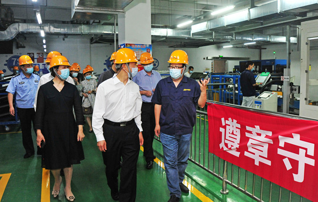 一行人先后參觀了公司展廳、黨員活動(dòng)室、八期生產(chǎn)線、自動(dòng)化包裝線等。參觀過(guò)程中,公司總經(jīng)理張斌對(duì)杜鐘氨綸公司的發(fā)展歷程,差別化產(chǎn)品、戰(zhàn)略優(yōu)勢(shì)、積極開(kāi)拓營(yíng)銷渠道,創(chuàng)新運(yùn)用新媒體傳播方式推進(jìn)商品銷售等進(jìn)行了詳細(xì)介紹。副市長(zhǎng)陳紅淦對(duì)氨綸公司低溫?zé)嵴澈习本]、抗菌氨綸、驅(qū)蚊氨綸給予了高度評(píng)價(jià)。希望公司進(jìn)一步深入實(shí)施差別化氨綸及后道特色產(chǎn)品發(fā)展戰(zhàn)略的重大舉措,乘風(fēng)破浪,再創(chuàng)行業(yè)輝煌。