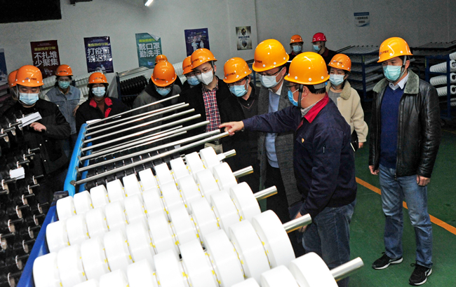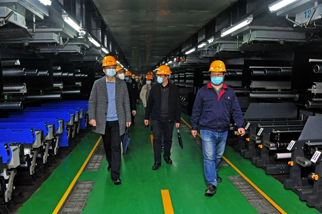 安處長(zhǎng)一行參觀了展廳、八期生產(chǎn)線、自動(dòng)包裝線。在隨后的交流座談會(huì)上,張斌總經(jīng)理詳細(xì)地介紹了杜鐘氨綸的發(fā)展歷程及近年來的生產(chǎn)運(yùn)營情況。胡傳法書記具體匯報(bào)了氨綸黨建工作的開展情況,著重介紹了三組聯(lián)建的實(shí)施背景、重要意義、取得成效。工信局調(diào)研組向我司宣講了有關(guān)政策,并對(duì)我司的數(shù)字化項(xiàng)目提出建議。