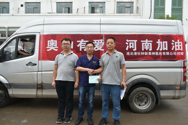 中午十二點,第一批物資捐贈后,顧不得吃飯我們就奔赴第二個捐贈點滎陽紅十字會。路上交警為我們耐心引導(dǎo),仔細說明哪里有塌方,哪里可以通行,臨行還貼心的留下微信號碼,囑咐道:在鄭州遇到困難隨時聯(lián)系。到達后不出意外的開始排隊,看著其他志愿者熱火朝天的忙碌,我和同行的小孫心里很不是滋味:我們千里迢迢帶著集團公司黨委和公司黨委的重托和港城人民的美好祝愿來到災(zāi)區(qū),我們不僅僅是要來捐贈物資,是不是也該做點什么?幾經(jīng)請示,紅會組織人員終于答應(yīng)了我們的請求,同意我們作為臨時志愿者加入搬運捐贈物資的隊伍。雖然大家已經(jīng)兩天沒合眼了,但是當(dāng)穿上志愿者馬甲后,我們頓時精神煥發(fā),立刻投入到緊張有序的搬運工作中。托舉起每一件來自祖國各地捐贈物資,心里都暖暖的,因為這里充滿了來自大江南北人們深深的祝福,激動的心情難以言表。此刻,我們對“眾志成城”有了更深刻的理解。
