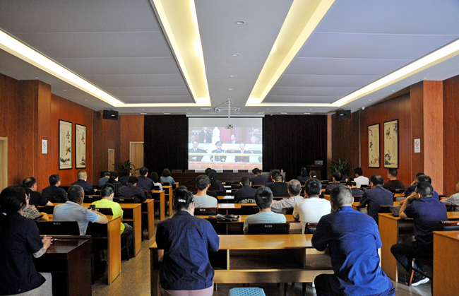 公司領(lǐng)導(dǎo)班子成員和全體黨員,在公司多功能廳集中觀看慶祝中國共產(chǎn)黨成立100周年大會。