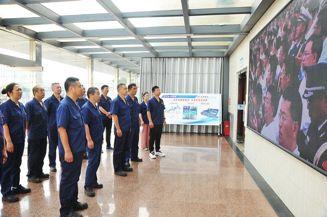 黨員在公司展廳觀看慶祝中國共產(chǎn)黨成立100周年大會。