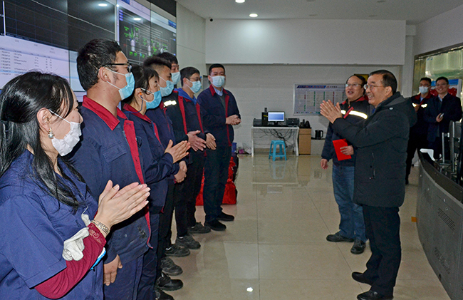“過年了,你們還堅(jiān)守在第一線,大家辛苦了。”2月12日,大年初一一早,陽(yáng)光明媚,集團(tuán)公司總經(jīng)理胡建明一行在公司總經(jīng)理張斌的陪同下來(lái)我公司,對(duì)春節(jié)期間堅(jiān)守一線的員工們送上新年祝福和慰問品。