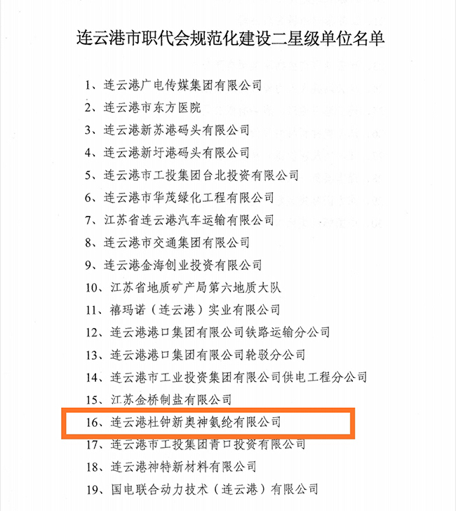 近期,連云港市總工會對全市各級職代會規(guī)范化建設(shè)表現(xiàn)突出的企事業(yè)單位進行了表彰,公司榜上有名,獲評市“職代會規(guī)范化建設(shè)二星級單位”稱號。