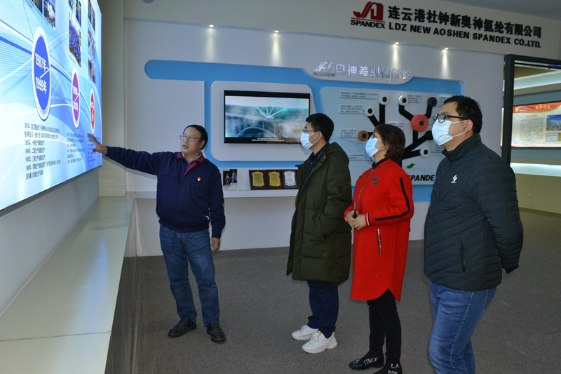 11月23日,國家紡織產(chǎn)品開發(fā)中心總工程師陳寶建一行來公司進(jìn)行國家差別化功能性氨綸開發(fā)基地的資質(zhì)實(shí)地考評工作。公司總經(jīng)理張斌等陪同考察調(diào)研。