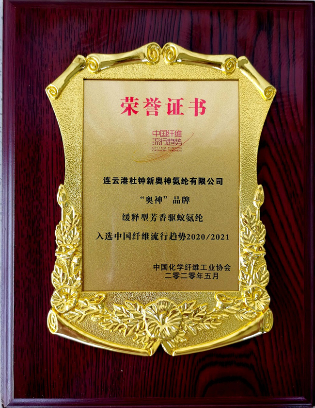 近年來,氨綸公司緊跟時代步伐,牢牢把握流行趨勢,不斷提升研發(fā)能力,致力于高品質(zhì)、差別化氨綸纖維的研發(fā)、生產(chǎn)和應(yīng)用,先后開發(fā)了超柔、高回彈、原液著色、可染、衛(wèi)材、多彩、石墨烯、低溫?zé)嵴澈稀Ⅱ?qū)蚊、抗菌等系列氨綸產(chǎn)品,多項產(chǎn)品處于同行業(yè)前列。此次,氨綸公司“奧神”品牌緩釋型芳香驅(qū)蚊氨綸成功入選“中國纖維流行趨勢2020/2021”,再次證明了我公司在市場需求研判及新產(chǎn)品開發(fā)方面的實力,也進(jìn)一步提振了“奧神”品牌的影響力。