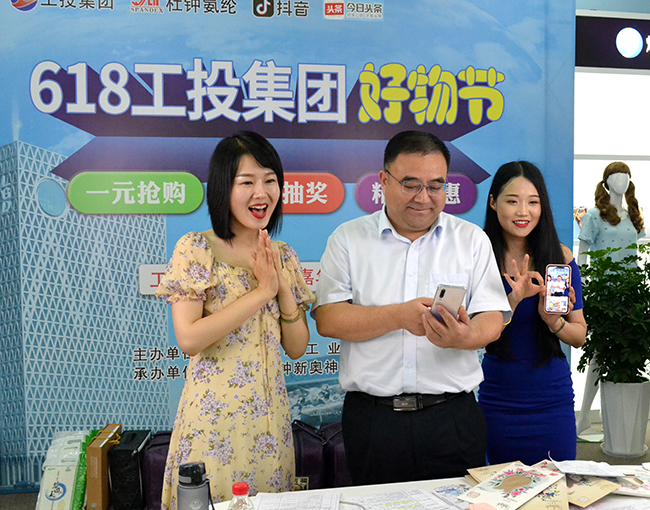 6月18日,集團(tuán)公司黨委書記、董事長楊龍走進(jìn)氨綸公司直播間,為“618工投集團(tuán)好物節(jié)”代言。