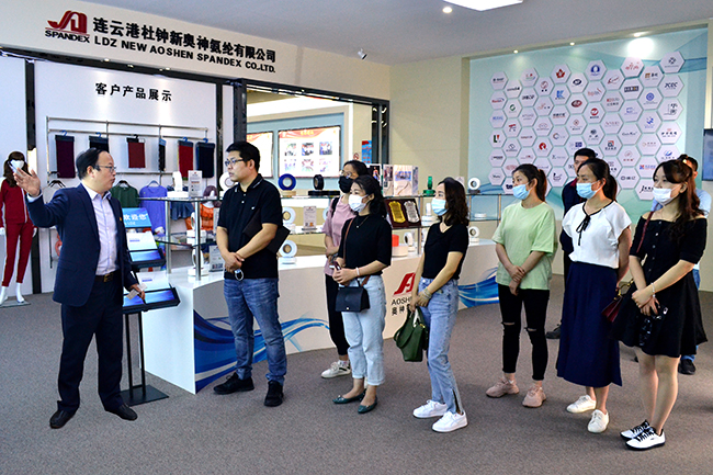 孫濱部長(zhǎng)一行先后參觀了公司展廳、八期生產(chǎn)線、自動(dòng)化包裝線、自動(dòng)化立體庫、研發(fā)中心,公司總經(jīng)理張斌對(duì)我公司的發(fā)展歷程,差別化產(chǎn)品、戰(zhàn)略優(yōu)勢(shì)等進(jìn)行了詳細(xì)介紹,孫濱部長(zhǎng)對(duì)我公司低溫?zé)嵴澈习本]、抗菌氨綸、驅(qū)蚊氨綸的功能特點(diǎn)、應(yīng)用效果等進(jìn)行了細(xì)致了解。