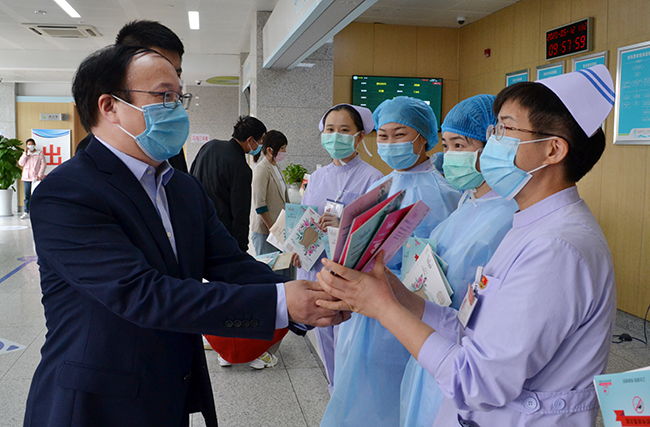 張斌總經(jīng)理表示,在全民共抗疫情的關(guān)鍵時期,廣大醫(yī)護(hù)工作者挺身而出,向險逆行,日夜奮戰(zhàn),向全世界展示了新時代中國醫(yī)護(hù)工作者的勇氣、智慧與擔(dān)當(dāng)。我們希望能通過捐贈活動為連云港市第一人民醫(yī)院疫情防控工作貢獻(xiàn)一份力量,擔(dān)負(fù)起應(yīng)有的社會責(zé)任。