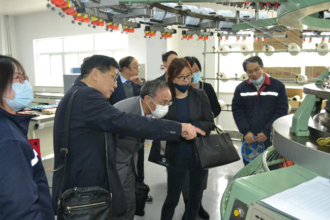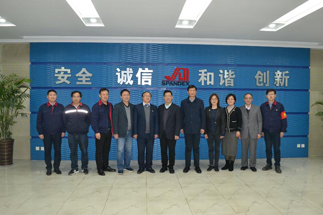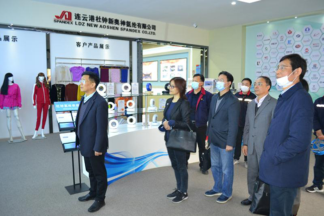 蔣教授一行先后參觀了公司產(chǎn)品展廳、八期生產(chǎn)線、研發(fā)中心,公司總經(jīng)理張斌對(duì)氨綸公司的發(fā)展歷程,差別化產(chǎn)品、戰(zhàn)略優(yōu)勢(shì)等進(jìn)行了詳細(xì)介紹,蔣教授對(duì)氨綸公司低溫?zé)嵴澈习本]、抗菌氨綸、驅(qū)蚊氨綸及氨綸生產(chǎn)全流程自動(dòng)化、智能化生產(chǎn)線等給予了高度評(píng)價(jià)。