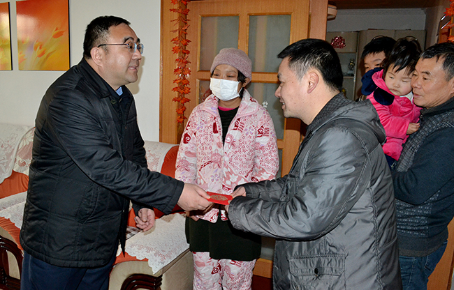 歲未情深,暖意融融。春節(jié)前夕,集團(tuán)公司黨委書記、董事長楊龍深入氨綸公司困難職工家中,帶著慰問金和慰問品走訪慰問困難黨員、困難職工,為他們送去氨綸公司的關(guān)懷與溫暖。氨綸公司公司總經(jīng)理張斌陪同。