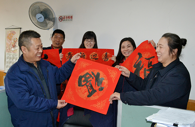 這些書(shū)畫(huà)作品出自連云港知名書(shū)畫(huà)家之手,春聯(lián)對(duì)仗工整、簡(jiǎn)潔精巧的文字描繪美好形象,抒發(fā)了美好愿景。作為新年的祝福,此次活動(dòng)廣受員工歡迎,大家表示活動(dòng)既營(yíng)造了濃濃的節(jié)日氛圍,也拉近了員工之間的距離。