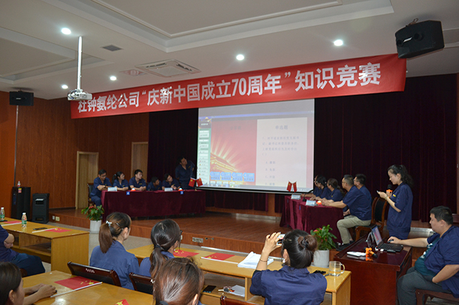為了切實加強黨的基層組織建設,增強黨員隊伍生機活力,組織引導各黨支部和廣大黨員爭發(fā)展之先、創(chuàng)和諧之優(yōu),以迎接黨的70周年生日。2019年9月26日,氨綸公司“慶新中國成立70周年”知識競賽在多功能廳舉辦。黨委書記趙萬明、公司總經理張斌等領導班子成員出席了本次活動。