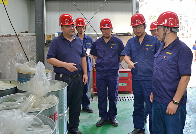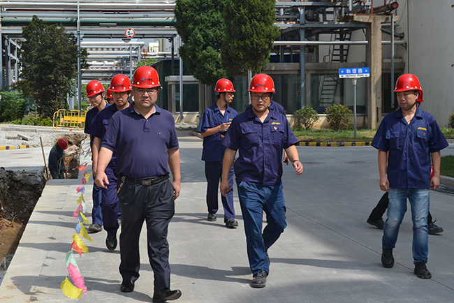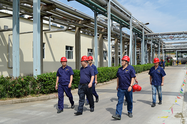 中秋、國慶臨近,為確保節(jié)日期間安全生產(chǎn),9月6日上午集團(tuán)公司黨委書記、董事長楊龍來氨綸公司檢查安全生產(chǎn)工作。公司黨委書記趙萬明、總經(jīng)理張斌、副總經(jīng)理?xiàng)钌阃?span lang="EN-US">