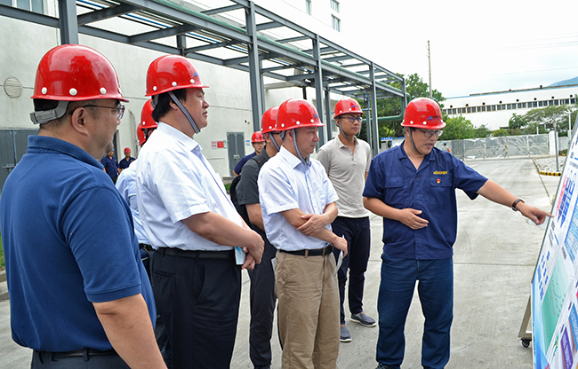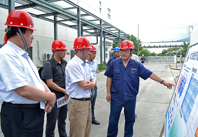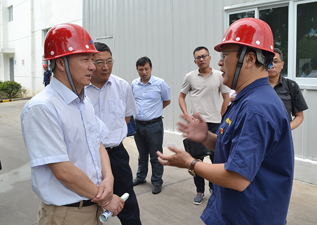 2019年8月12日,由省統(tǒng)計局副局長周國強帶隊的省政府能源消耗“雙控”目標(biāo)現(xiàn)場考核組來我市考核走進氨綸公司。副市長徐家保、市工信局局長董作村、工投集團董事長楊龍陪同。