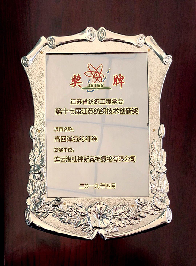 近日,經(jīng)企業(yè)申報(bào)、有關(guān)單位推薦和專家評審等流程,我公司高新技術(shù)產(chǎn)品“高回彈氨綸纖維”項(xiàng)目獲得第十七屆江蘇紡織技術(shù)創(chuàng)新獎。氨綸公司將以此為契機(jī),大力弘揚(yáng)“創(chuàng)業(yè)、創(chuàng)新、創(chuàng)優(yōu),爭先、領(lǐng)先、率先”的新時(shí)代江蘇精神,為建設(shè)強(qiáng)富美新江蘇和紡織強(qiáng)國作出新的貢獻(xiàn)。