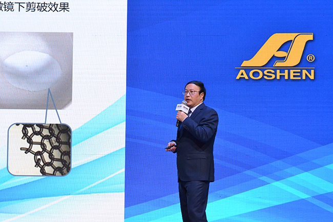 3月13日,“融-合”奧神氨綸新產品發(fā)布會在上海國家會展中心成功舉辦!中國工程院院士蔣士成、中國化學纖維工業(yè)協(xié)會副會長賀燕麗、趙向東等嘉賓蒞臨現場,在國內外的眾多客戶代表、觀眾共同見證下,氨綸公司低溫熱粘合氨綸和石墨烯氨綸兩大新產品正式面市。為期3天的展會上,有將近500位訪客前來氨綸公司展位咨詢洽談,特別是吸引到來自美國、德國、土耳其、日本、巴基斯坦、伊朗等眾多國外客商的熱切關注。