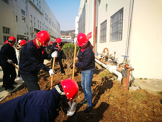 陽春三月,又是一年芳草綠,春回大地,又到植樹造林時。2019年3月12日上午,正值第四十一個植樹節(jié),氨綸公司各黨支部的黨員志愿者們響應(yīng)“為氨綸增添新綠,創(chuàng)和諧綠色企業(yè)”號召,積極參與植樹活動中來。