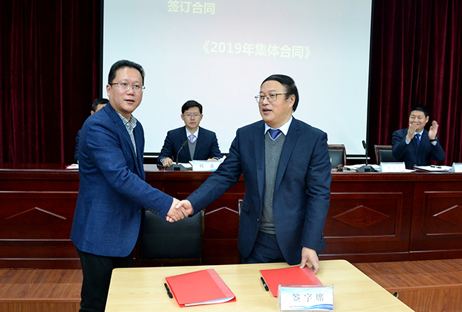 會(huì)議共六項(xiàng)議程:奏國(guó)歌;總經(jīng)理張斌作《工作報(bào)告》;審議通過(guò)相關(guān)方案和意見(jiàn);對(duì)2018年度優(yōu)秀集體和個(gè)人進(jìn)行表彰;簽訂《2019年集體合同》;職工代表作表態(tài)發(fā)言。