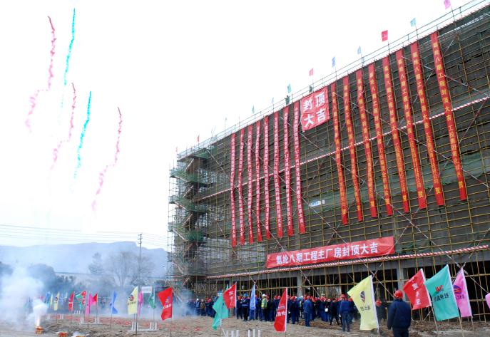 2018年1月3日,氨綸公司八期工程主體廠房封頂儀式隆重舉行。集團公司總經(jīng)濟師陳如軍、氨綸公司總經(jīng)理張斌等公司相關負責人、項目施工單位、監(jiān)理單位代表等人出席儀式。