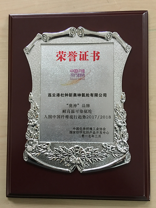 近年來,氨綸公司緊緊把握流行趨勢,緊跟時代步伐,牢固樹立以“新品研發(fā)促企業(yè)發(fā)展”的戰(zhàn)略目標(biāo),將新品研發(fā)作為企業(yè)發(fā)展的核心,不斷加大研發(fā)投入,陸續(xù)開發(fā)出超柔、耐高溫、有色、衛(wèi)材等多系列產(chǎn)品,多項產(chǎn)品處于同行業(yè)前列。此次,氨綸公司“奧神”品牌耐高溫可染氨綸成功入圍“中國纖維流行趨勢2017/2018”,再次證明了我公司在新品研發(fā)和把握市場方面的實力,也進(jìn)一步擴(kuò)大了“奧神”品牌的影響力。