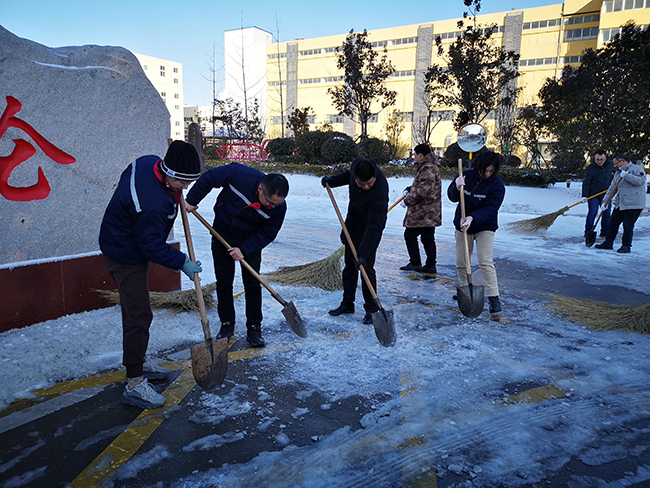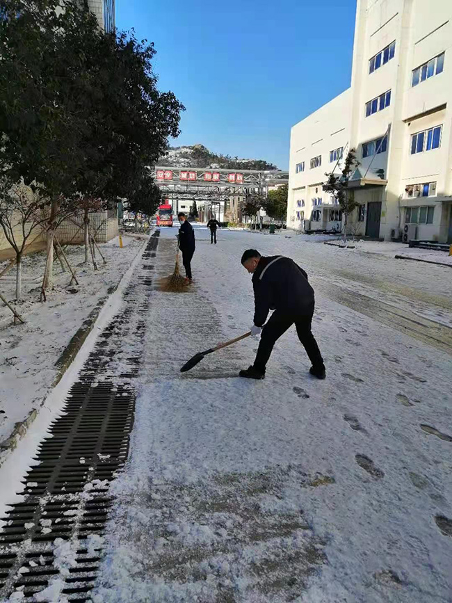 12月29日,港城迎來了2020年的第一場雪。白雪皚皚,北風呼嘯,廠區(qū)各個生產(chǎn)設(shè)施道路上都覆蓋上了厚厚的積雪。雖是一片銀裝素裹的美景,卻給廠內(nèi)廣大職工的出行工作造成極大不便。為了保障公司安全穩(wěn)定生產(chǎn)和員工出行道路安全,杜鐘氨綸公司黨委迅速組織開展了清除積雪大掃除活動。