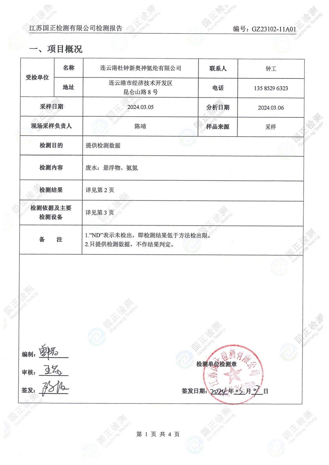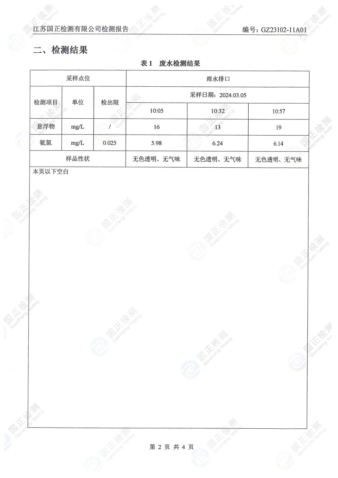 杜鐘氨綸2024年3月雨水檢測(cè)報(bào)告