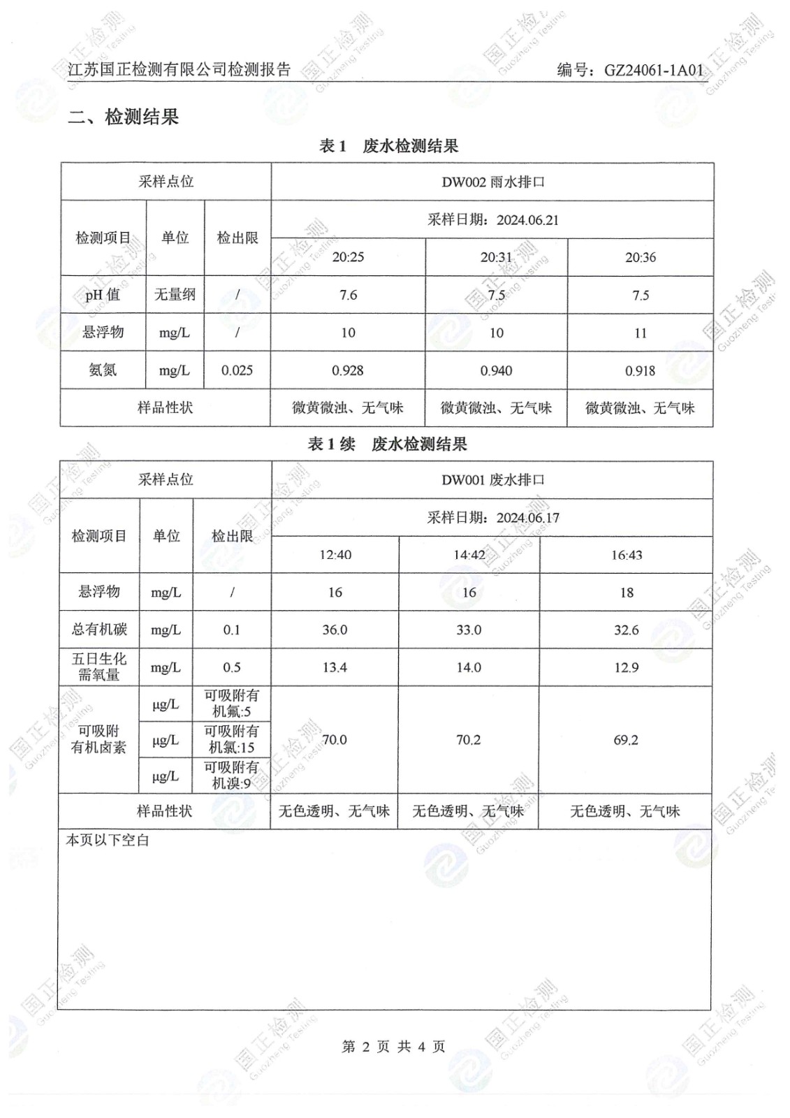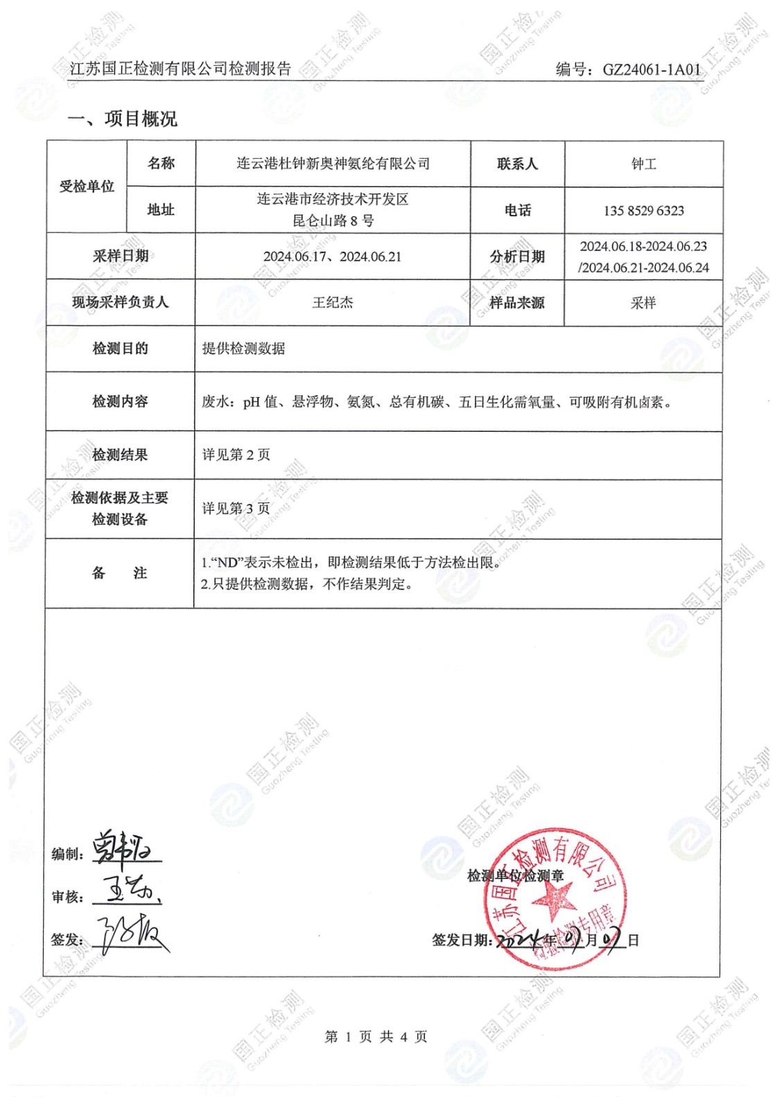 杜鐘氨綸2024年6月排污檢測報告