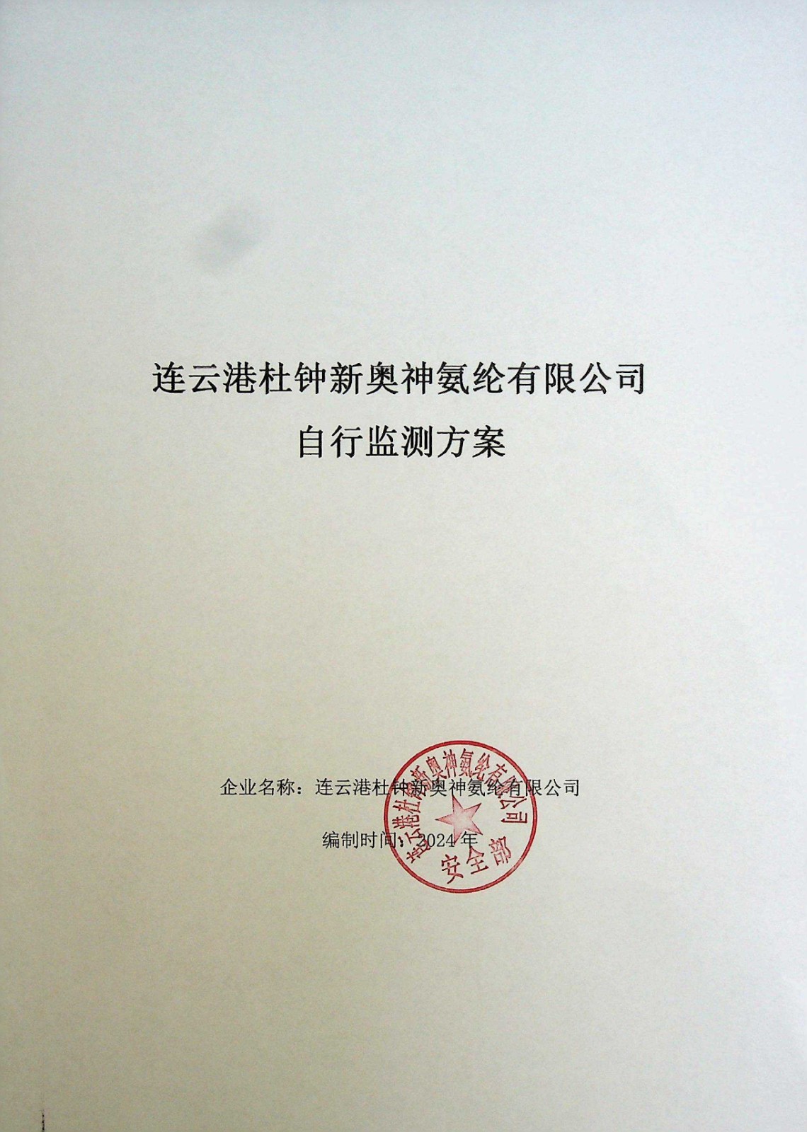 連云港杜鐘新奧神氨綸有限公司自行監(jiān)測(cè)方案