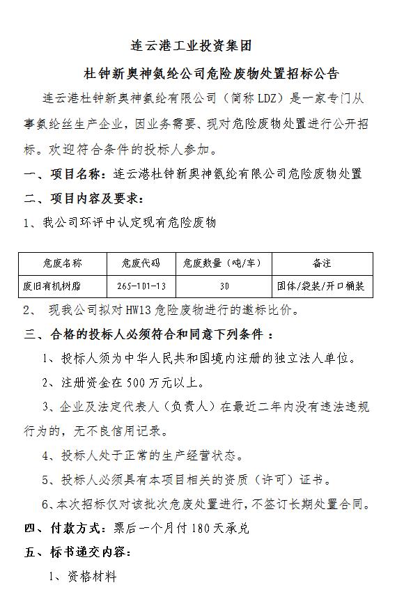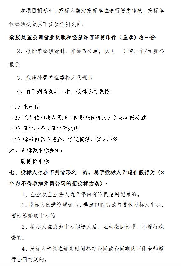 危險廢物處置招標(biāo)公告