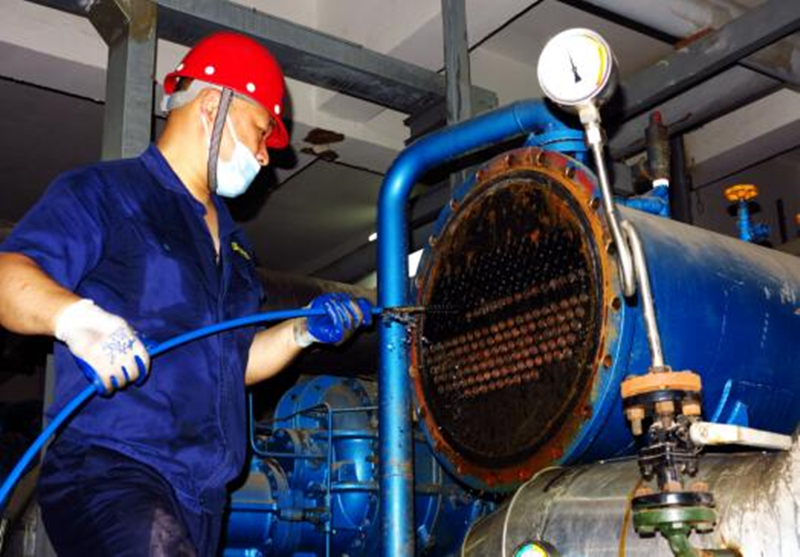 自主性:疫情期間,公用工程部自主維修小組根據八期冷媒機組運行狀況,判斷急需清洗冷凝器和油冷器的情況,緊急申請采購管道清洗設備,在無技術無培訓的情況,攻堅克難,自加壓力,在較短時間內熟悉和掌握清洗及使用技巧和方法,實現當天內完成冷凝器端蓋拆卸、換熱器管束清洗和復位調機工作,保證了生產運行的連續(xù)性。