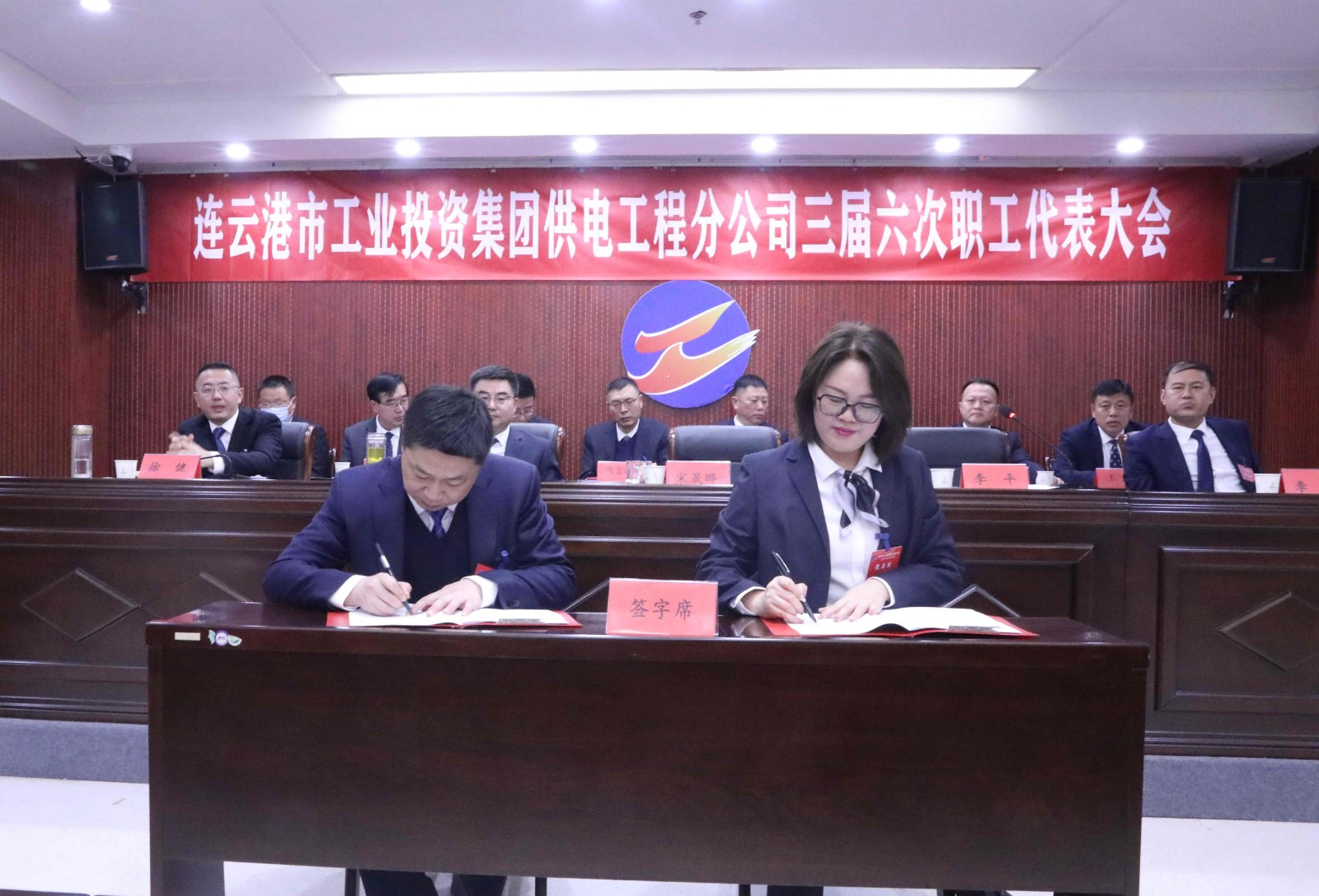 會上對2022年度先進單位、個人進行了表彰,臺北供電所、徐南供電所、灌西供電所、安全管理部等四家單位、部門作了表態(tài)發(fā)言并簽訂了《2023年度集體合同》《2023年度經(jīng)營目標(biāo)責(zé)任書》。